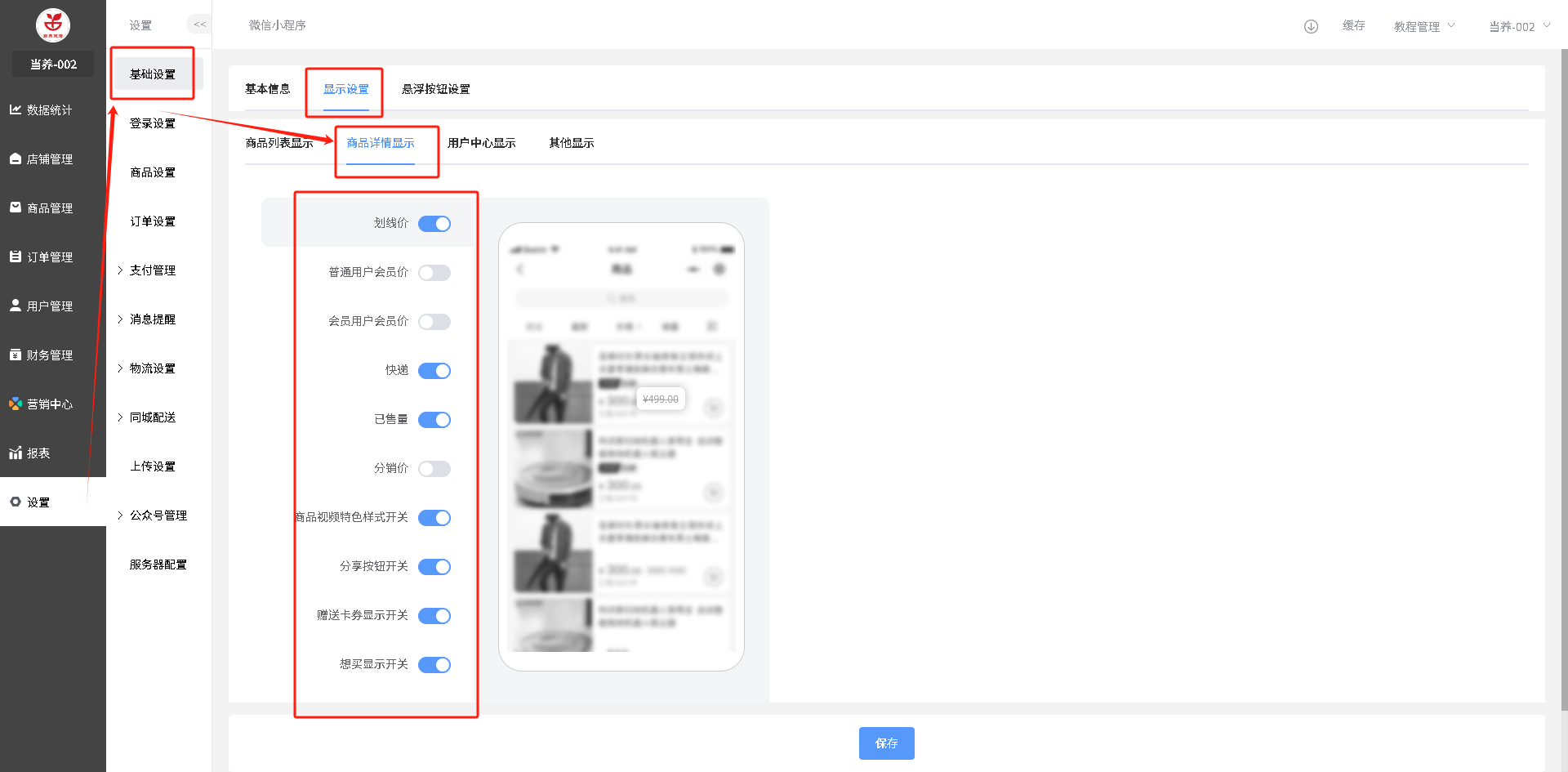 商品详情页显示内容设置