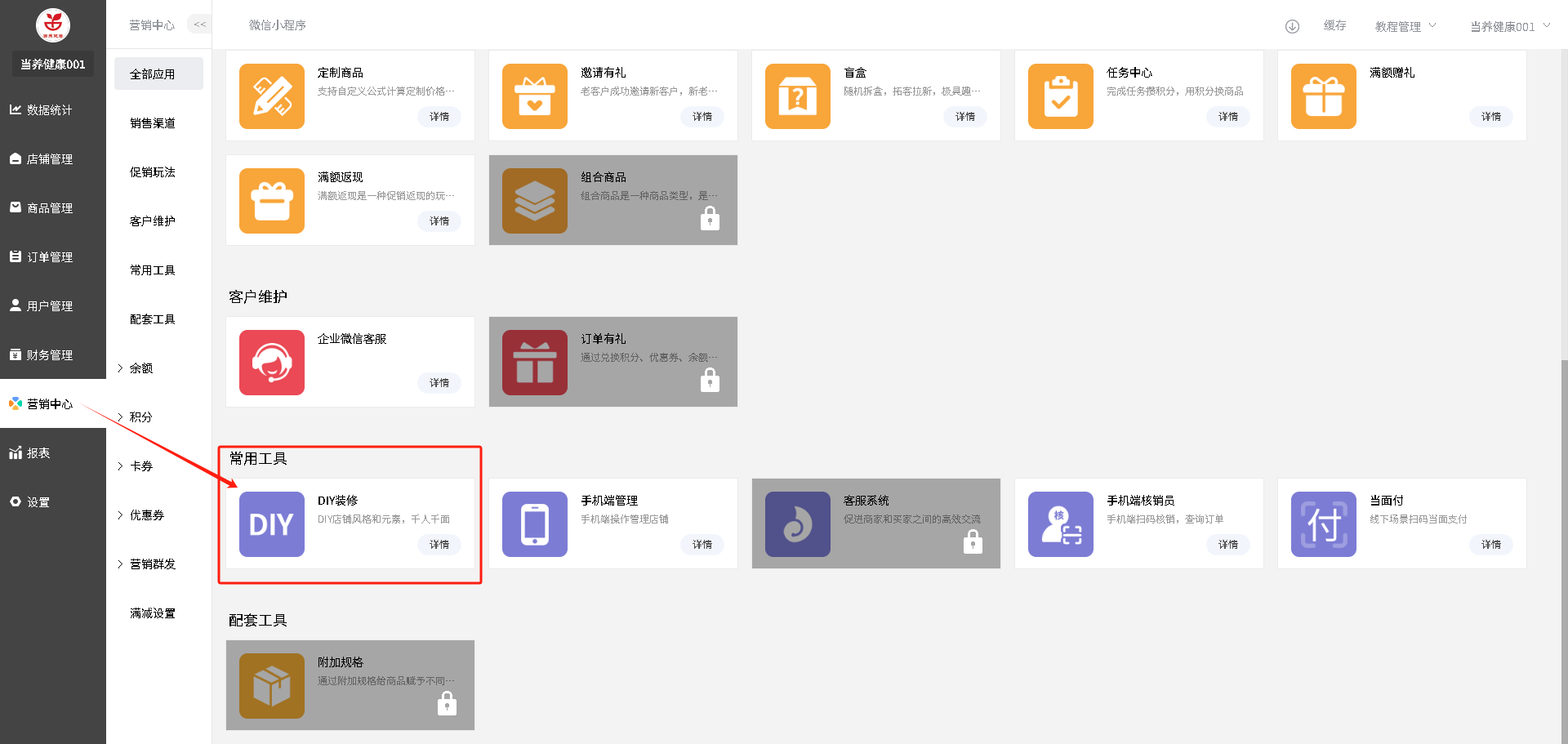 路径:营销中心----DIY装修