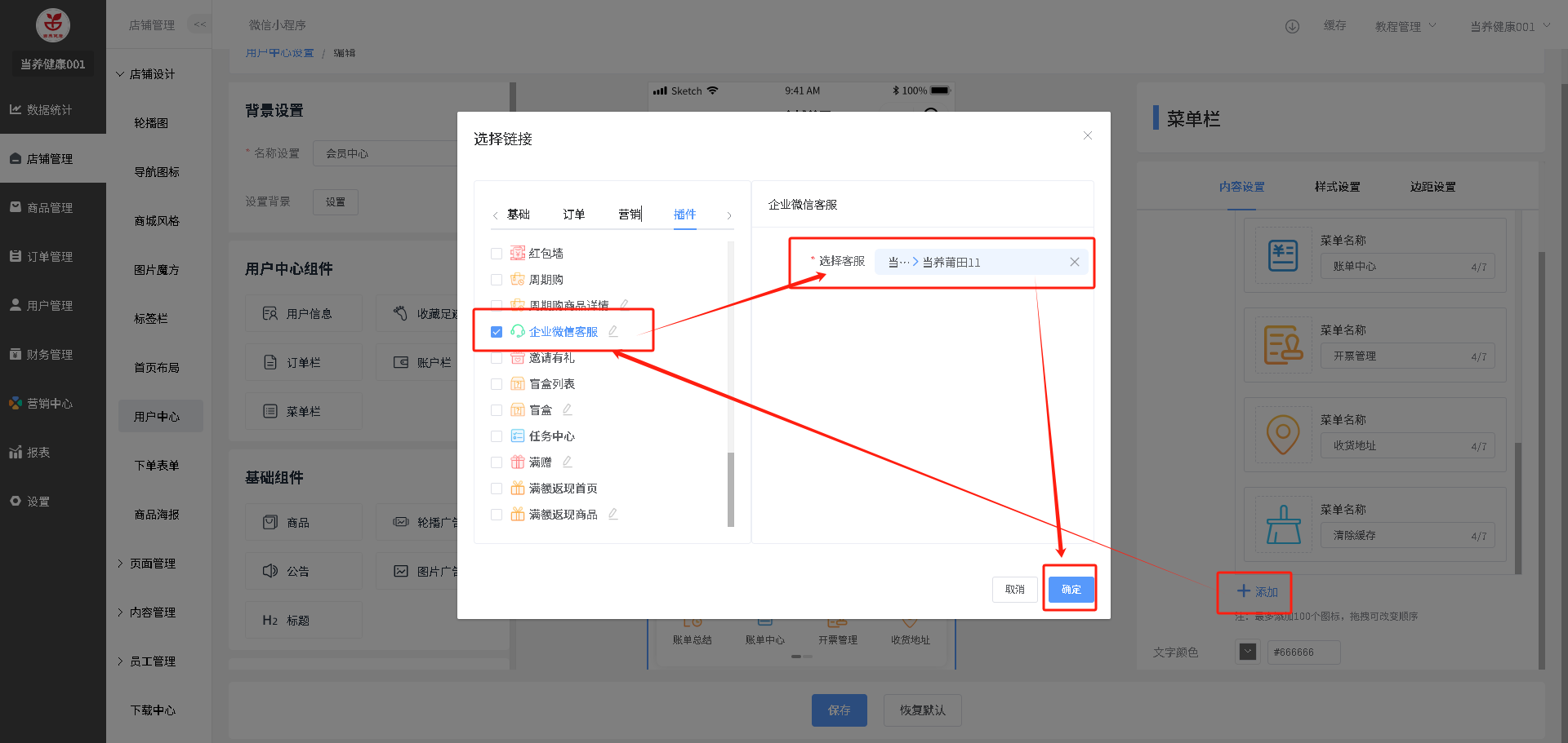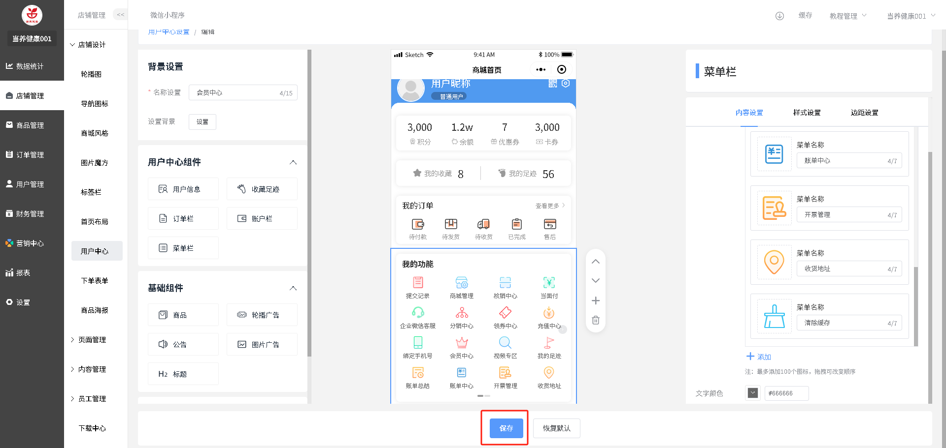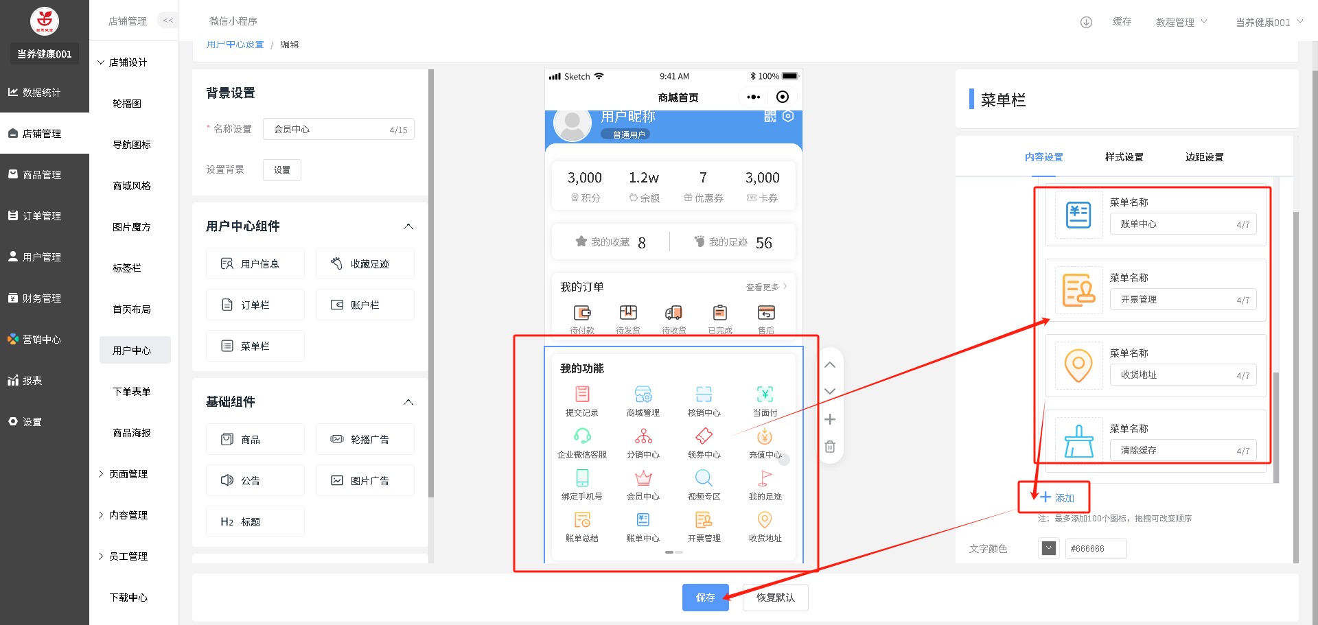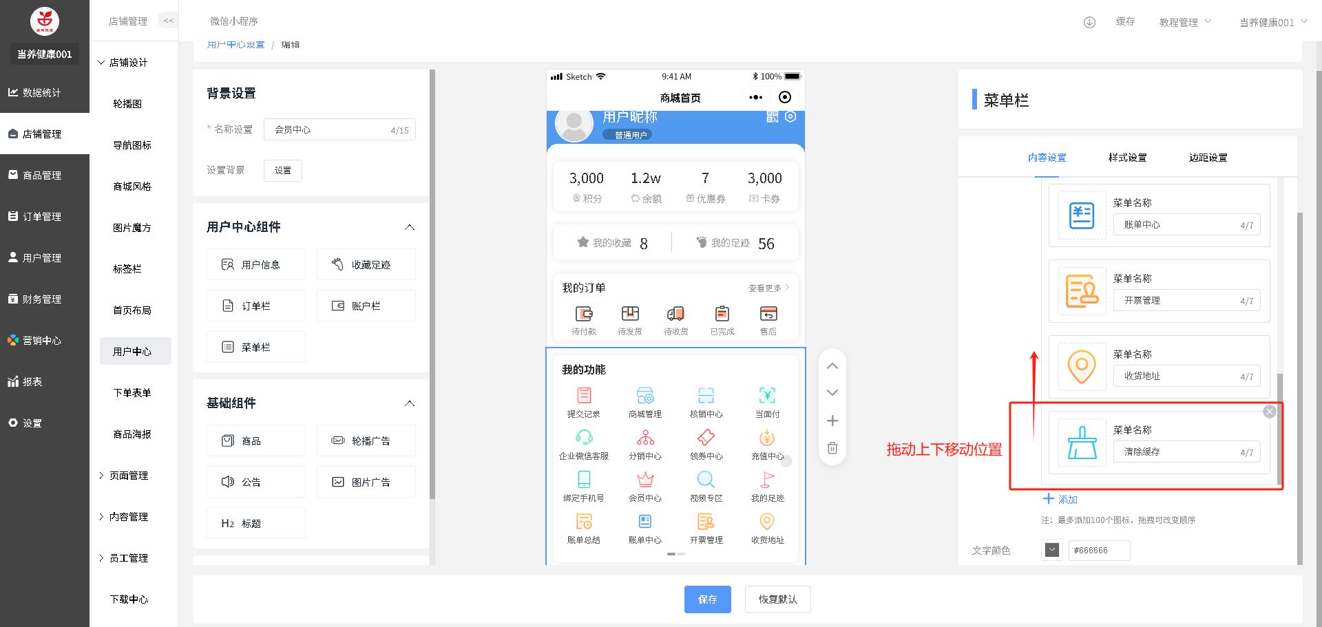 装修路径:店铺管理--用户中心--点击”编辑“图标操作