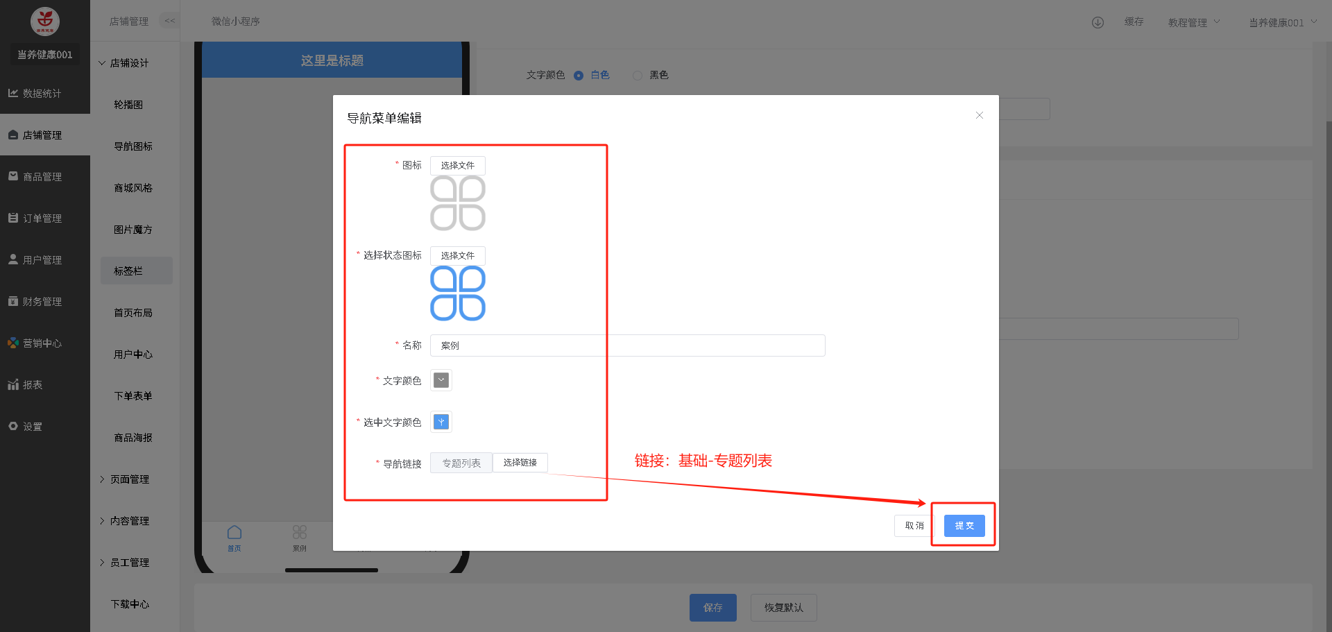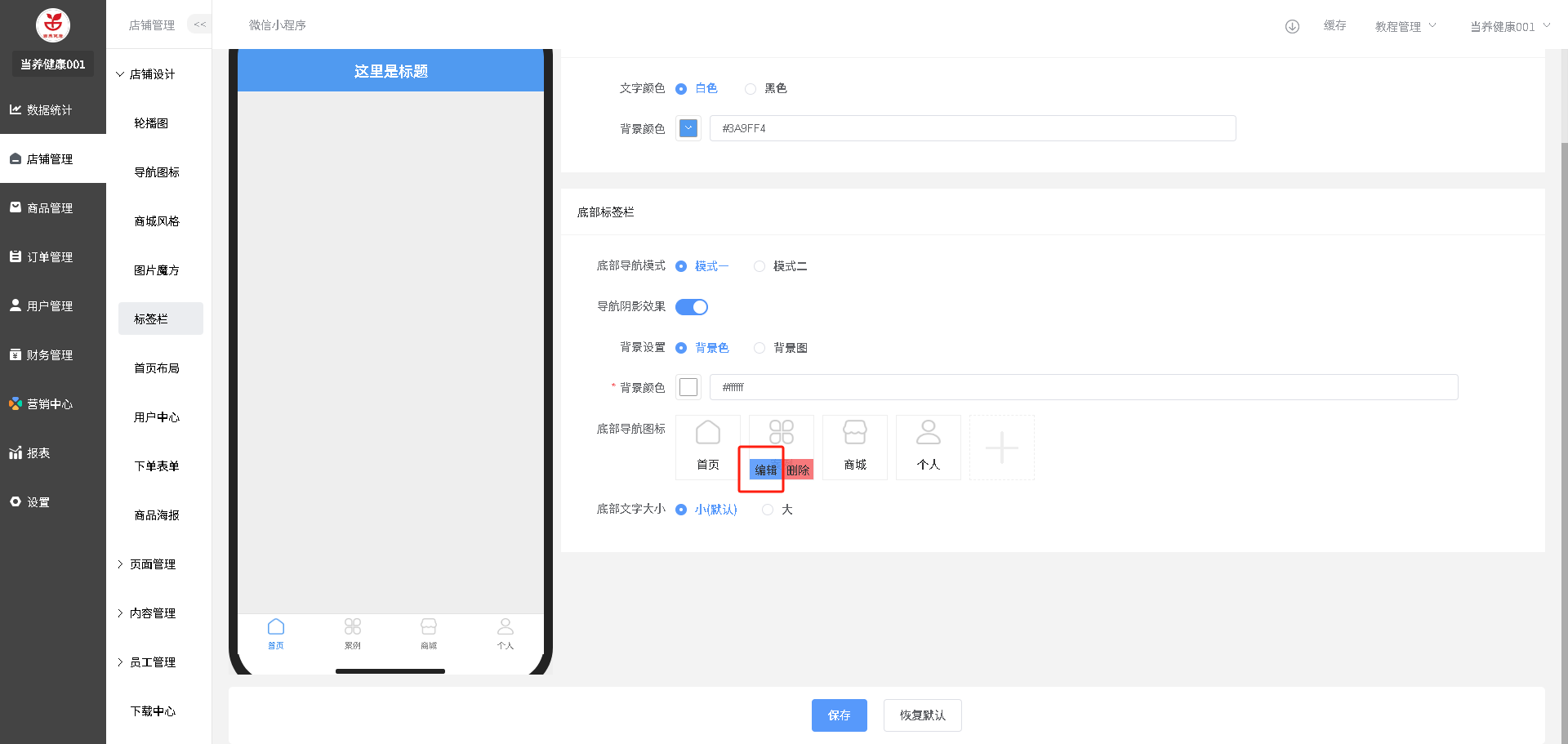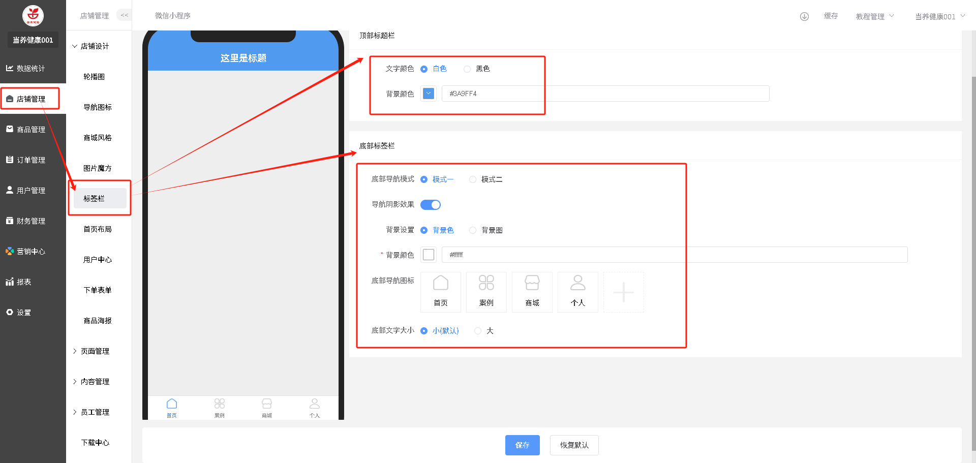 装修路径:店铺管理-标签栏