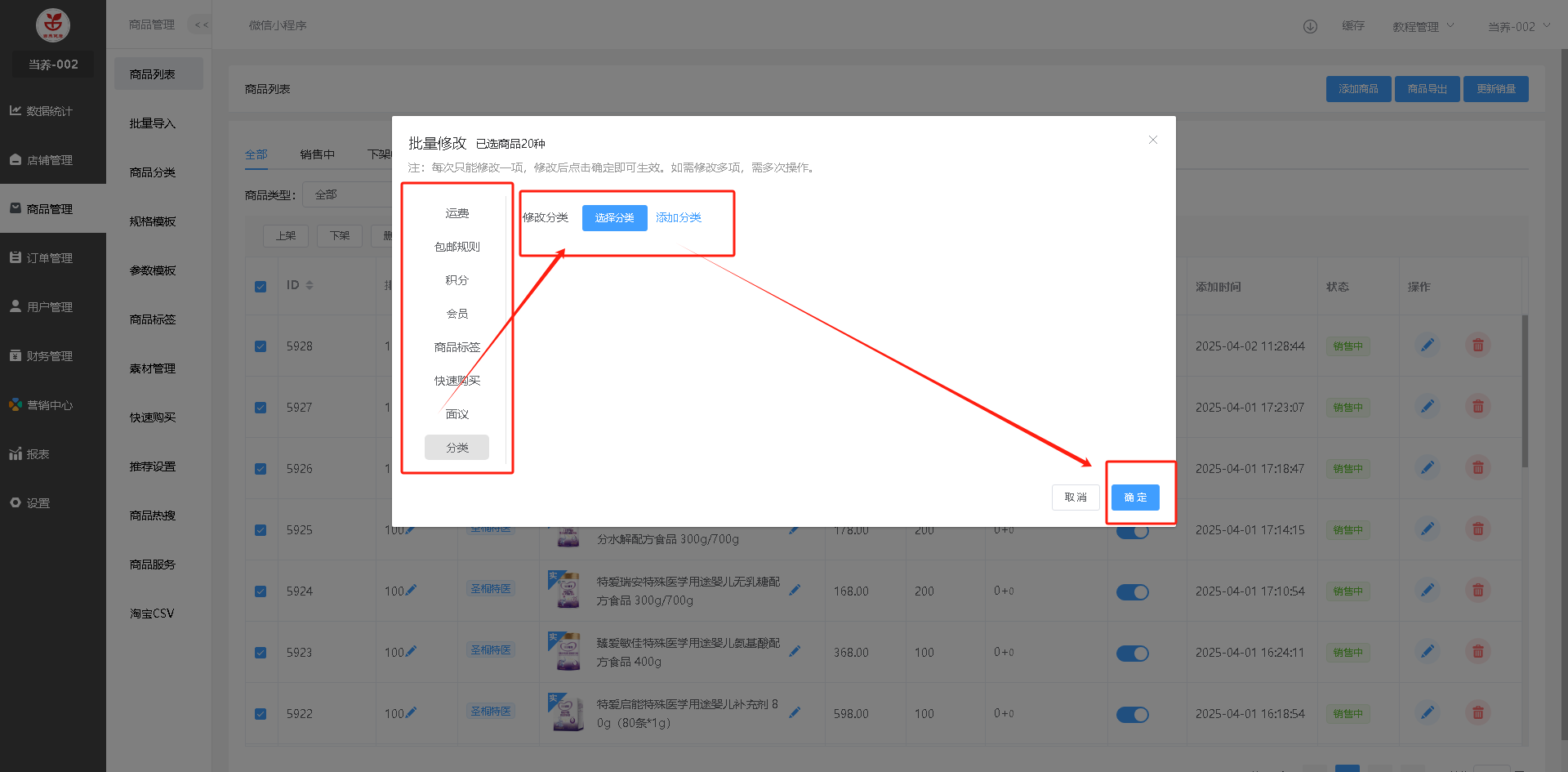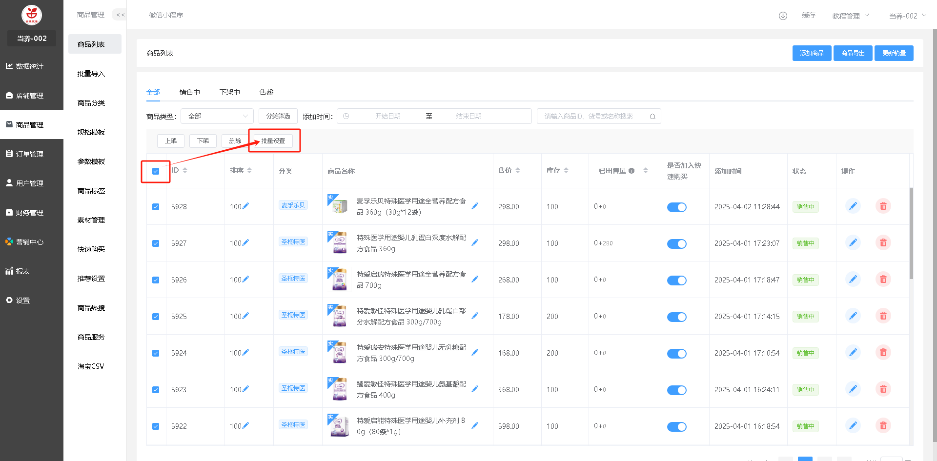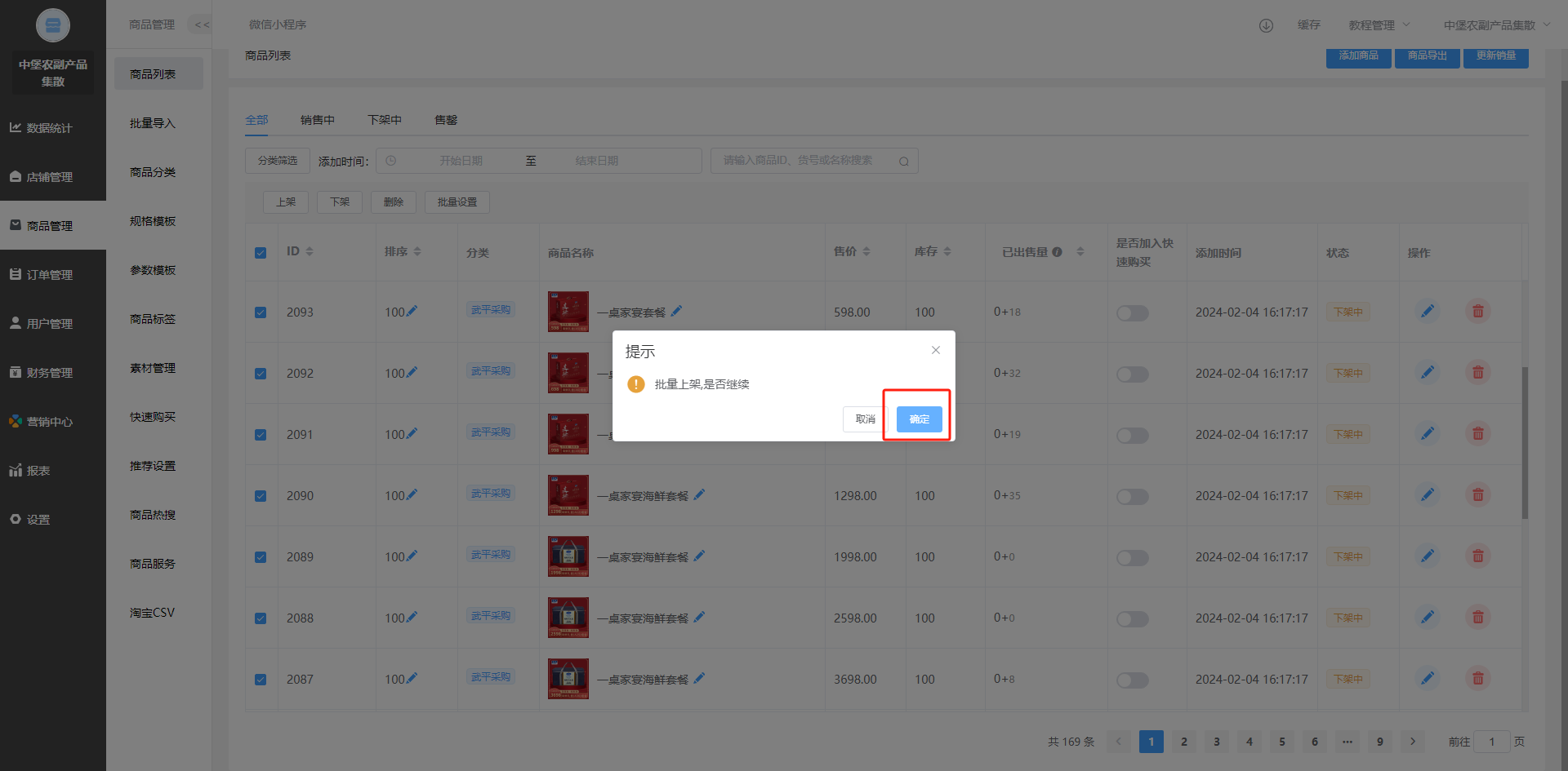 批量下架:同批量上架,只需要把点击“上架”按钮改成点击“下架”按钮就可