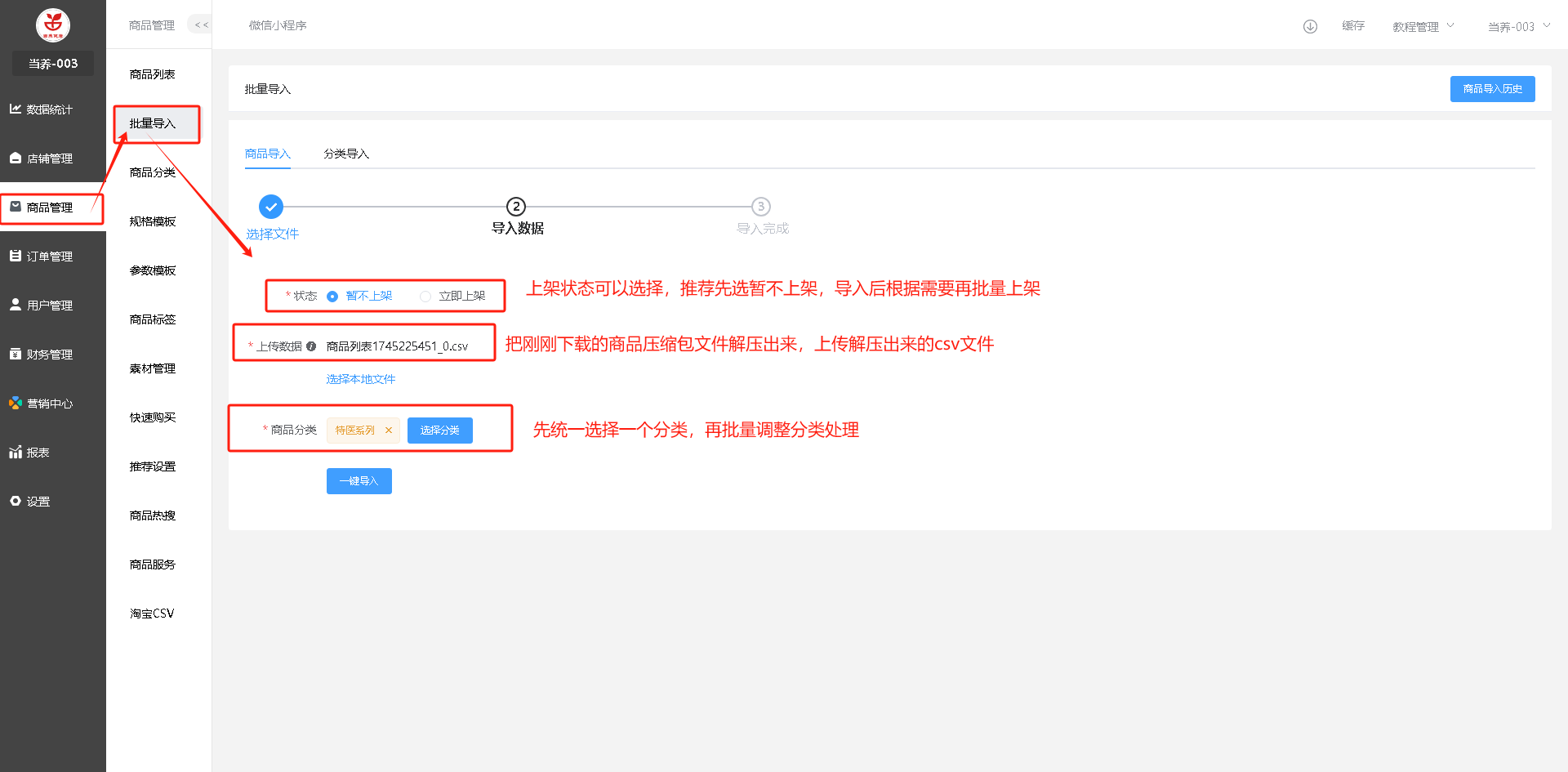 切换店铺,批量导入商品