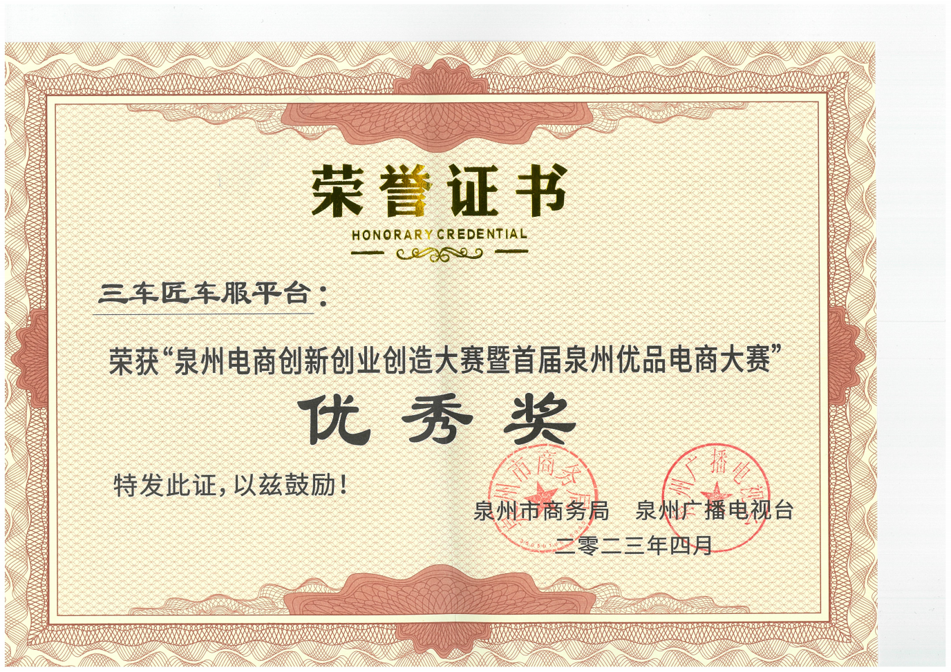 泉州电商创新创业创造大赛优秀奖