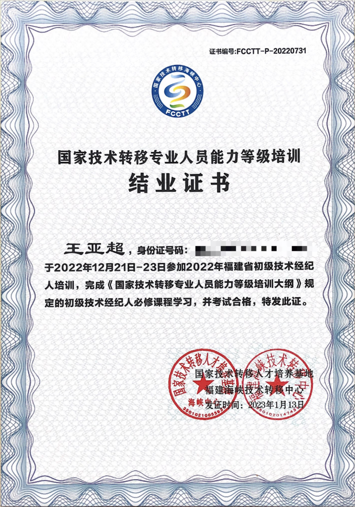 国家技术转移技术经纪人证书