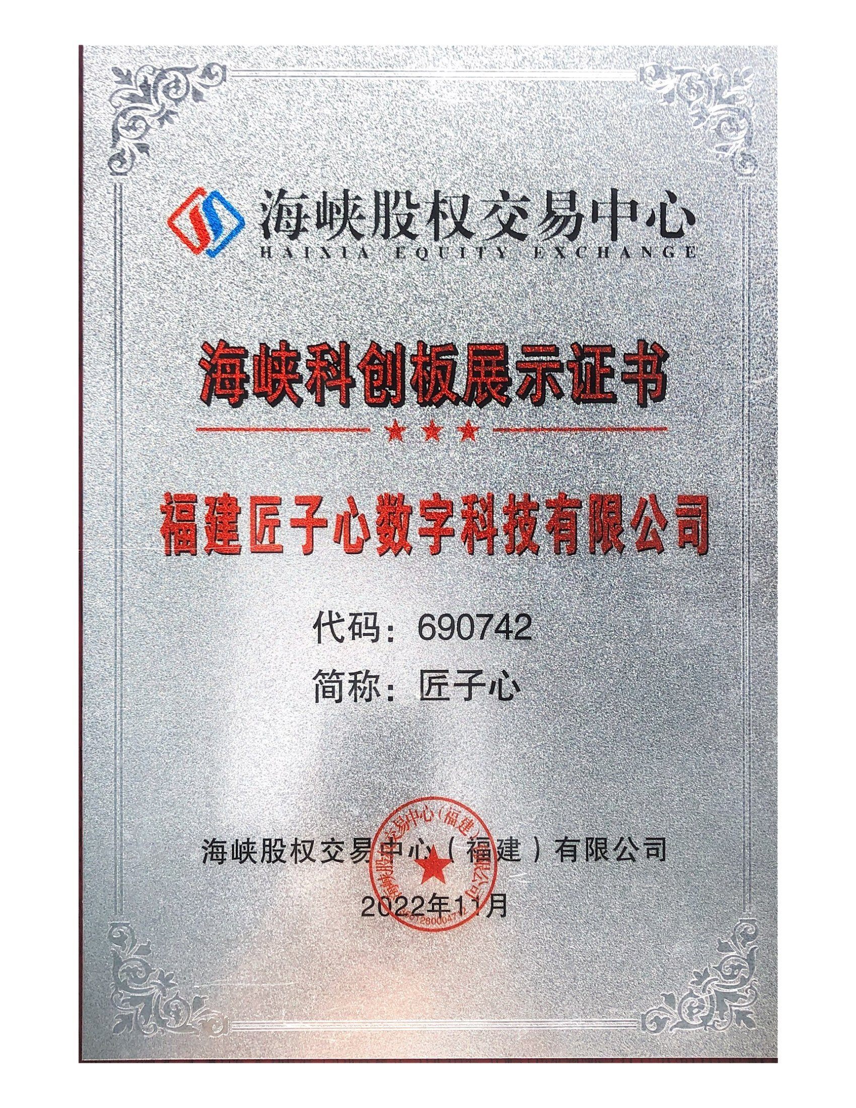 海峡股权交易中心科创板证书